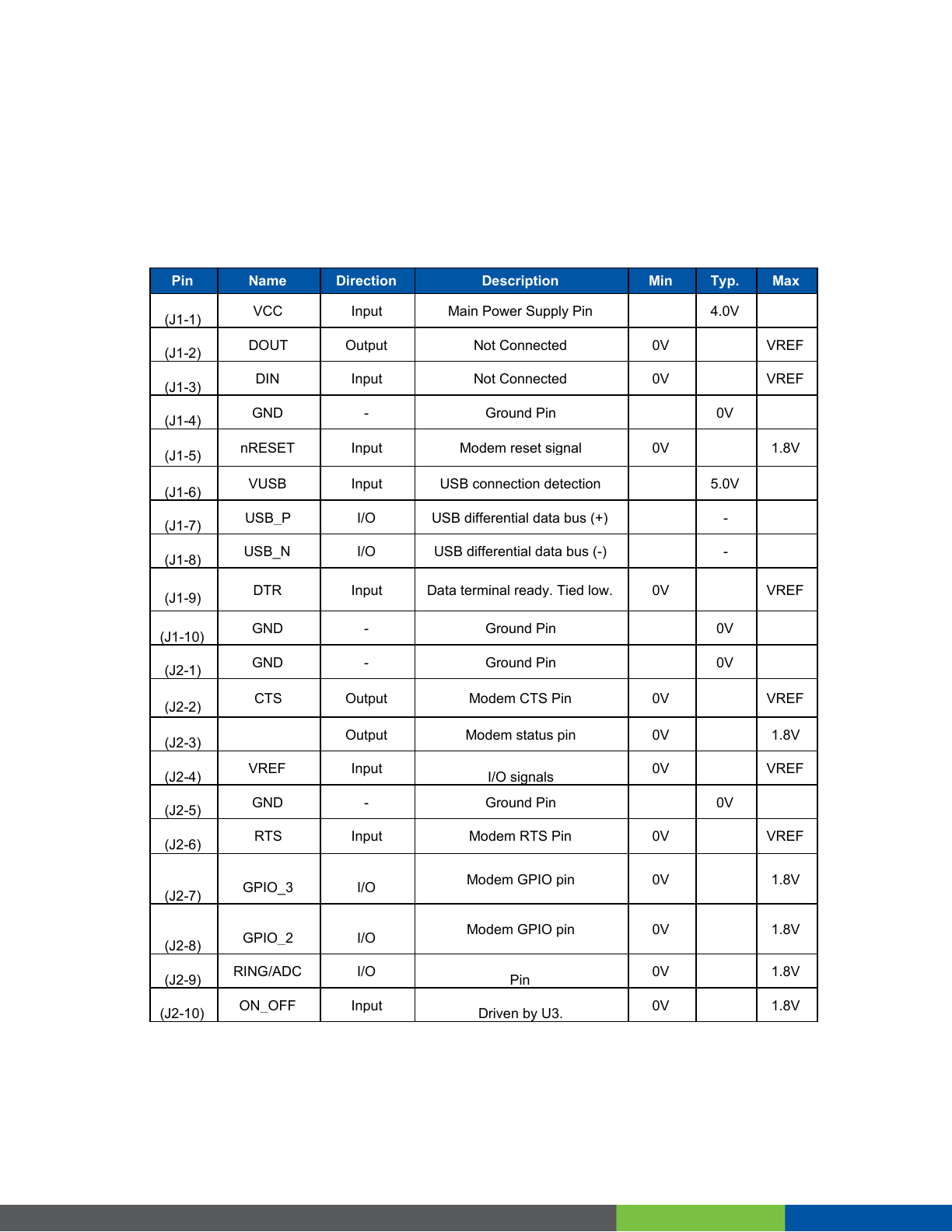 (J2-3) Ouxpux Modem slams pm 0V 1.8V
