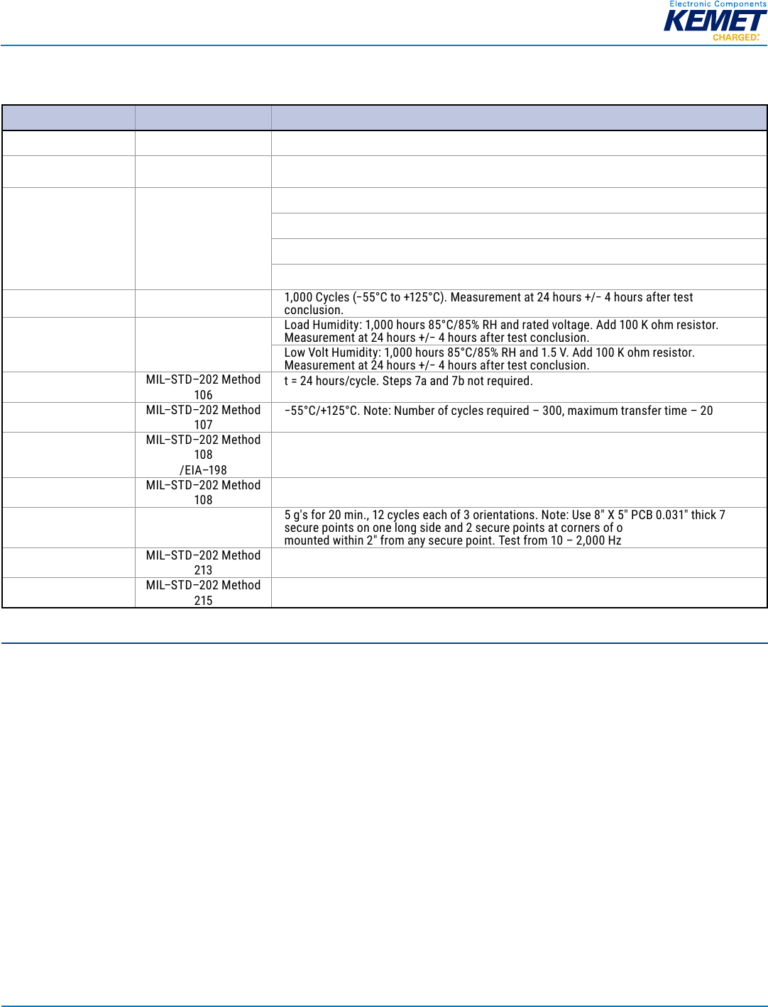 Low Volt Humidny: 1,000 hours SEC/85% RH and 1.5 V, Add 100 K ohm resisror.