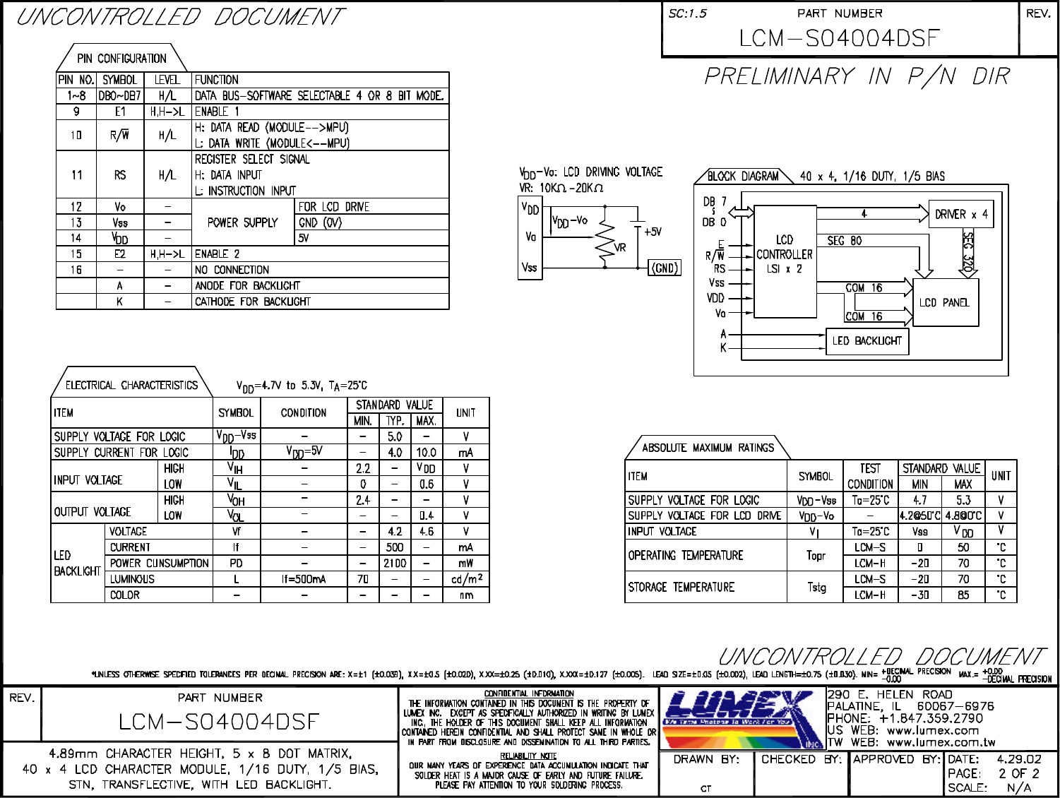 LCM-S04004DSF Datasheet by Lumex Opto/Components Inc.