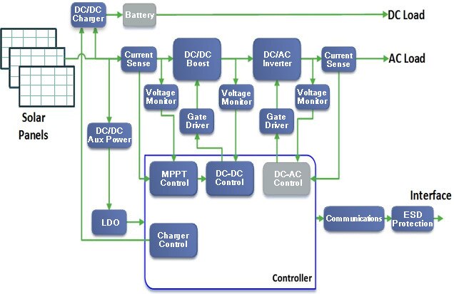 Solar power modules are one of the most common commercial and consumer choices for generating renewable energy. This renewable energy comes with the challenge of integrating a variable power source into a standardized electrical network. Solar inverters play a crucial role in rectifying the DC solar panel into an AC electrical grid. In addition to efficient AC/DC conversion, solar inverters are commonly used to monitor the non-linear response of a photovoltaic diodes to ensure the maximum power is produced. onsemi offers a complete solution that is design to sense, protect, and control energy from the cell to the grid.