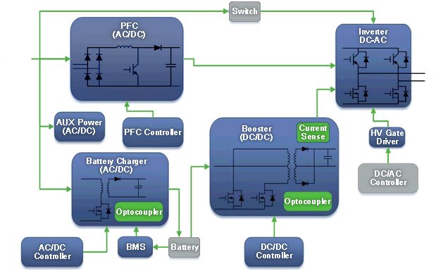 An uninterruptible power supply is vital for digital networks that are time and data dependent. Computational analysis, data storage and distribution, telecommunication systems, and even select cities are all dependent on a constant power source that is promised with UPS. These protective power sources are commonly integrated into the flow of power. This ensures that battery or other storage devices are constantly being monitored and energized so that in the event of system failure the UPS is at full support capacity. This monitoring, charging, and AC/DC rectification requires silicon that is not only capable but also efficient at high current states. onsemi offers a complete energy efficient solution that is design to control and convert electrical power whether or not there is power failure.