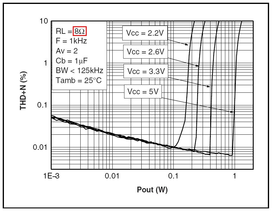 < 1% @ 1 W (8 Ω, 5 V)